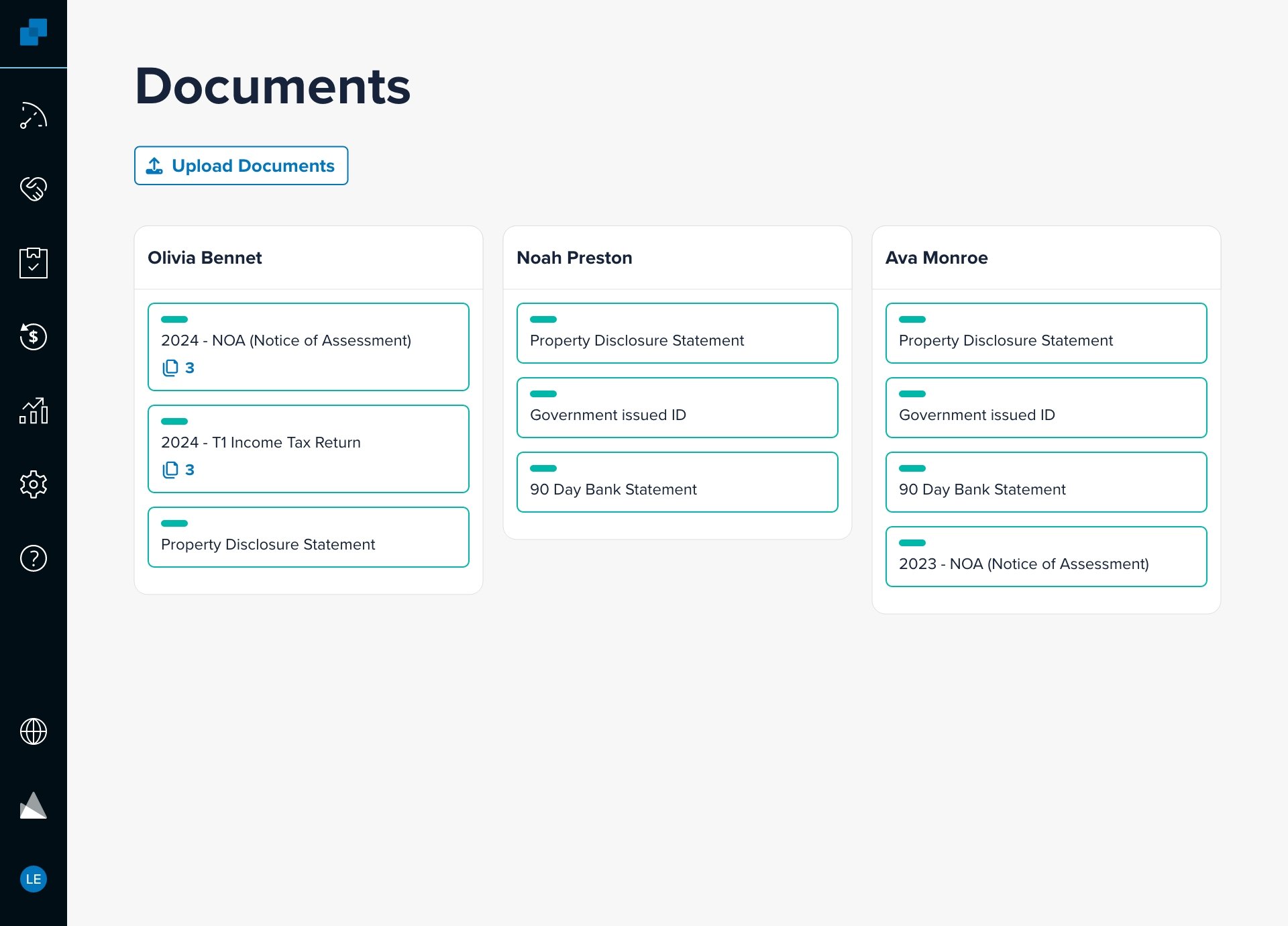 If you use Finmo, simply choose the documents already collected in the deal. No downloading, re-uploading, or duplicate work. If you don’t use Finmo, simply drop the files into the verification tool.